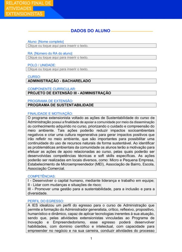 Projeto de Extensão III – Administração